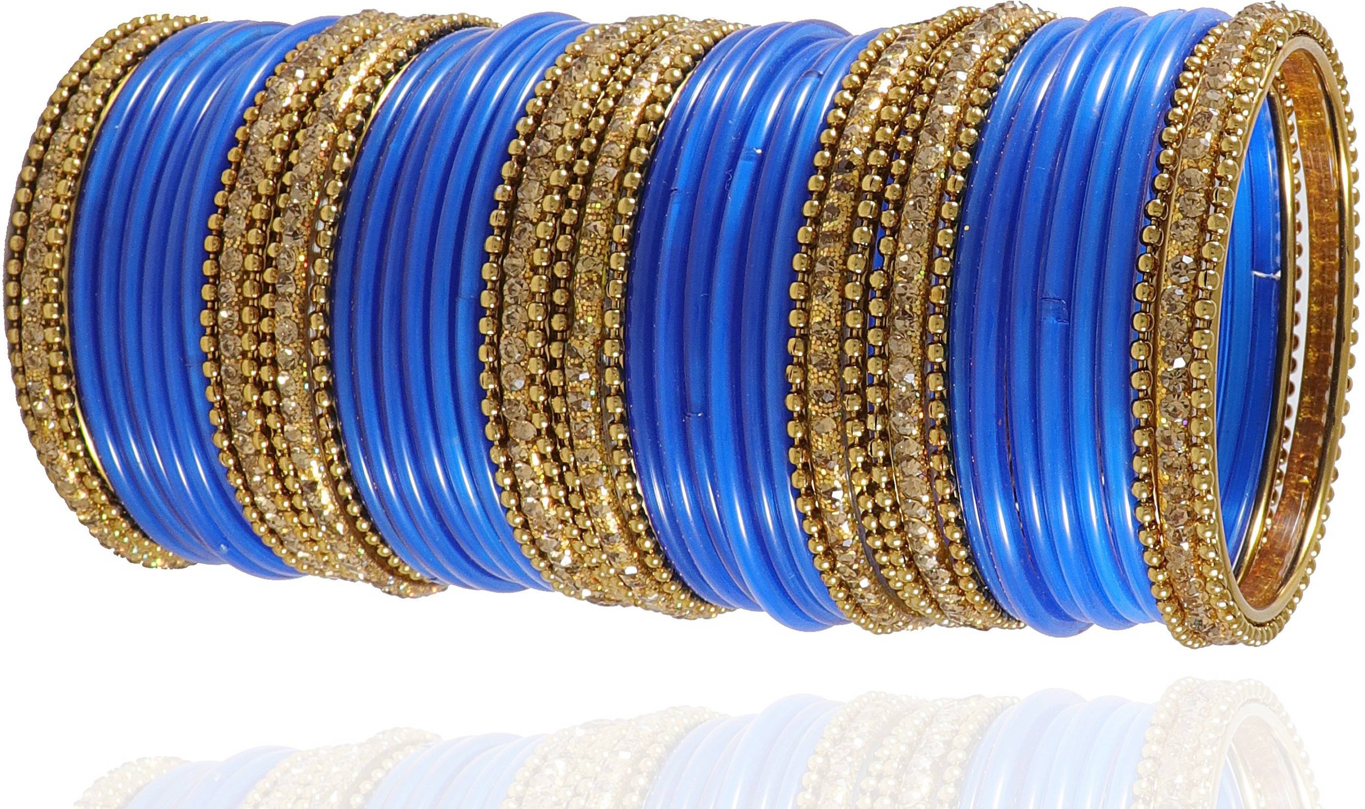 Women love jewellery; specially Bangles adore a women. They wear it on different occasion. They have special importance on ring ceremony, wedding and festive time. They can also wear it on regular basics. Make your moment memorable with this range. This Bangle set features a unique one of a kind designer with Glossy finish