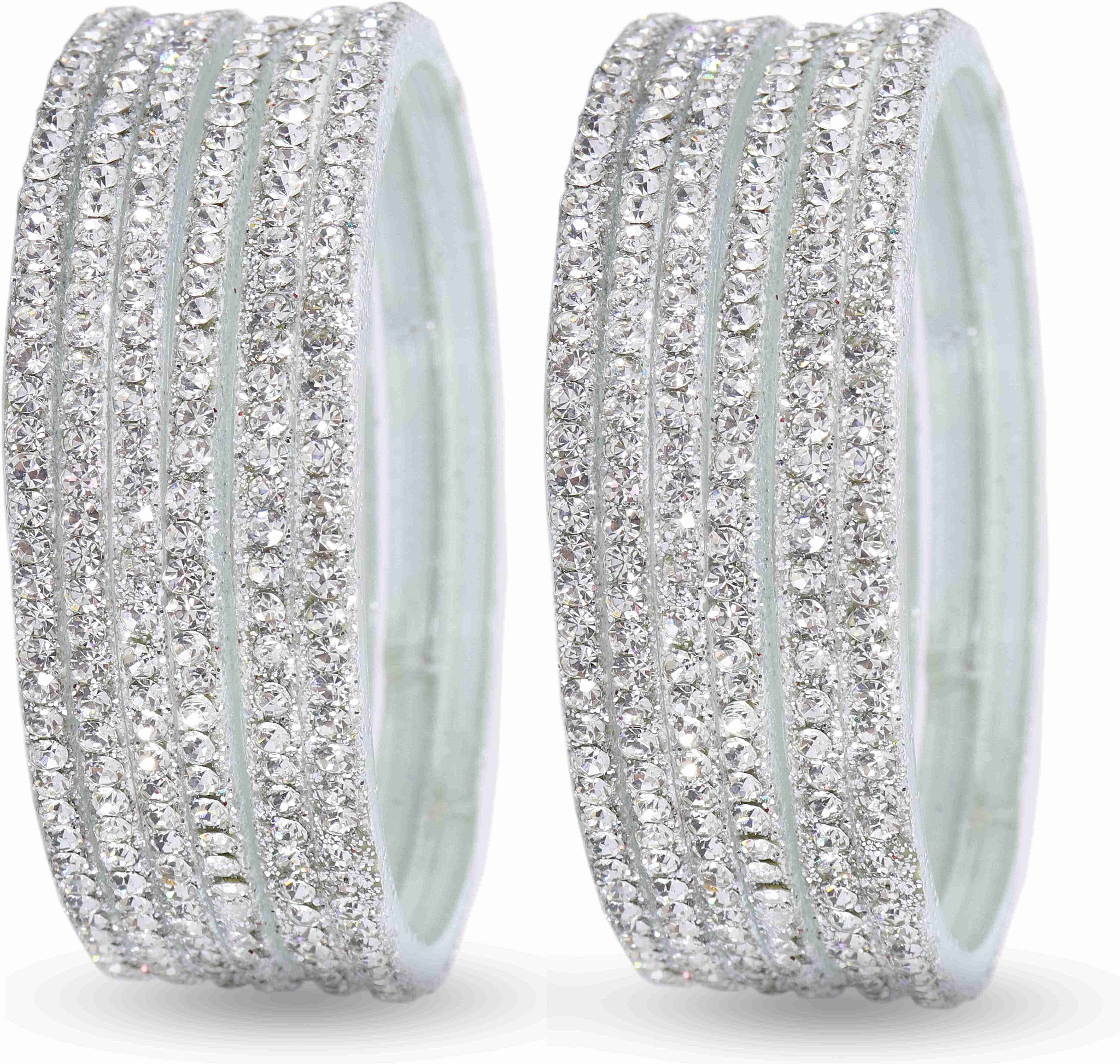 NMII Non Precious Acrylic (Plastic) Base Plastic With Zircon Gemstone Studded Glossy Finished Bangle Set For Women and Girls