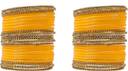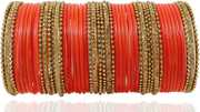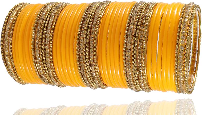Women love jewellery; specially Bangles adore a women. They wear it on different occasion. They have special importance on ring ceremony, wedding and festive time. They can also wear it on regular basics. Make your moment memorable with this range. This Bangle set features a unique one of a kind designer with Glossy finish