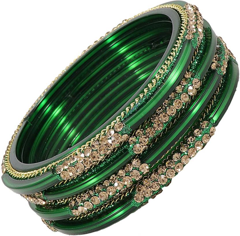 NMII Glass with Zircon Gemstone Or Spread with Glitter Pattern and Linked with Chain Glossy Finished Kada Set For Women and Girls