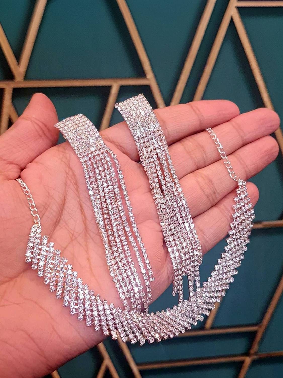 The Brand NMII, Presents Premium Silver Plated Alloy Metal with American Diamond Stone Studded Kada Bangles Set For Women and Girls. This NMII Bangles Kada Set will Enhance The Beauty of your hands. These Metal kada Set are part of NMII's latest collection, and made of Alloy Metal and Premium Quality AD Stone. These NMII's Designer Metal Bangles Set Have a Premium Finish and are Perfect for Festivals, Parties, Weddings, Engagements, and For Daily wear. Welcome to NMII, a world of Glass bangles, Metal bangles, Acrylic Bangles, Chuda Sets, Bridal Chuda sets, Kaleere sets, Kadaa sets, and other Women's Jewelry Accessories. Choose from us, variety of bangles such as Glass, Metal, Silk thread, Acrylic (plastic), Zircon, Bead-worked, Kundan-worked, Lac material, Electric Light Chudaa, and more, Available . Please refer to NMII (New Make In India), Size Chart to determine your Wrist size Accurately. CLEANING INSTRUCTIONS: To clean the bangles, use a smooth cotton cloth. To ensure the Ir longevity. And, Keep the bangles/kadaa away from Direct water, Perfume, Deodorant, Sunlight, and other Chemicals, and store them in an Airtight zip-lock pouch. Thank you for choosing NMII (New Make In India) Products. If you have any Problems, Please refer to our product description For Sizes and Care Instructions. NMII has been selling products since 2016.