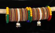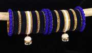 NMII's Traditional Gold Plated Metal Velvet Bangles Chuda Set For women & Girls. Its is a Beautiful premium piece that combines old antique style with timeless beauty, encapsulating the essence of a traditional wedding or any occasion. Crafted from high-quality Metal material, AD Stone, Zircon Gemstone, Pearls Latkan & Fur Velvet. It is durable and vibrant colours symbolizes love, passion, and new beginnings. The intricate design showcases NMII's skillful craftsmanship, ensuring you shine on your special day. The set also doubles as a versatile piece of bridal jewelry, complementing a wide range of outfits, including classic red sarees and modern lehengas. NMII prides itself on offering the finest quality, timeless style, and unwavering commitment to tradition. The set is designed to make your wedding day extra special, ensuring you look and feel your best. Elevate your bridal ensemble with NMII's Bangles Chuda Set and make memories that will last a lifetime. These NMII's Designer Bridal Chuda Set Have a Premium Finish and are Perfect for Weddings, Engagements, Functions, Festival, Rituals, and Events. The Brand NMII sells all types of Glass Bangles, Metal Bangles, Acrylic Bangles, Chuda Sets, Kaleera Latkan Sets, Kadas, Bracelets, Women's and Girls Traditional to Modern Jewellery, and many More. And Please Refer to our Size Chart to Know your Hand Size Precisely. Clean bangles with a smooth cotton cloth, avoid direct water, perfume, deodorant, sunlight, and chemicals, and store in an airtight zip-lock pouch to maintain longevity. Thank You For Choosing NMII's Premium Collection.