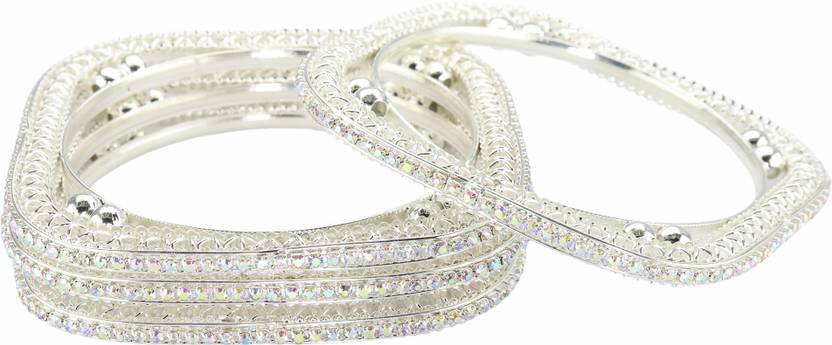 NMII Trendy Square Metal Bangles Set For Women & Girls with Zircon Diamond | Stylish Party Bangles | White Bangles | Diamond Kada | White kada For Women | Hand Accessories-(MAH109-Silver-2.4)