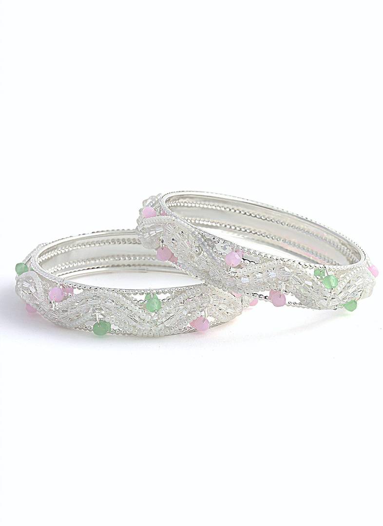 NMII Latest Metal Pearls Moti Bangles Kada Set For Women & Girls