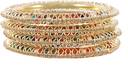 NMII Non-Precious Metal with Zircon Gemstone Studded Worked Glossy Bangle Set For Women/Girls