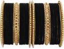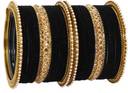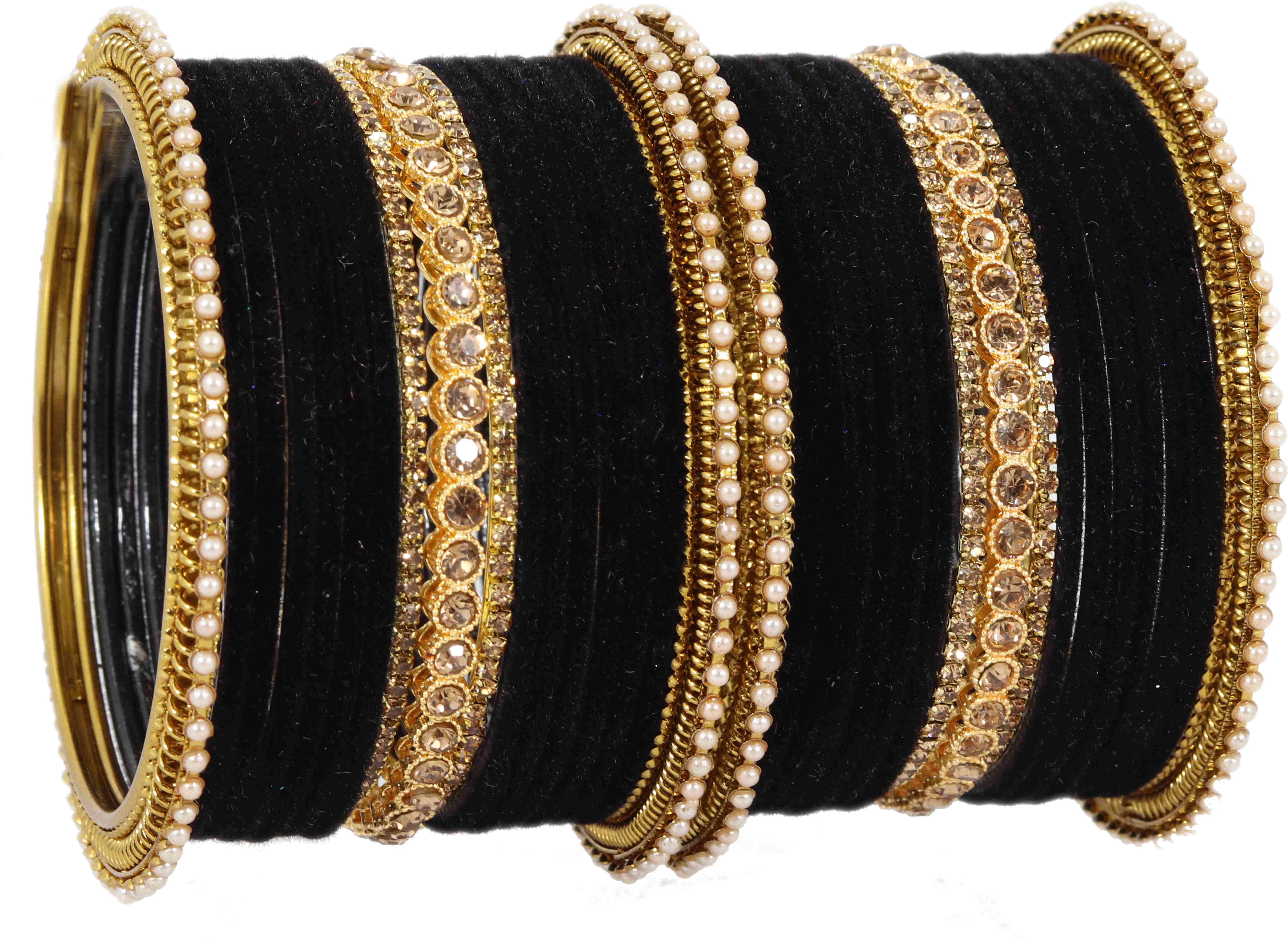 NMII Non-Precious Metal with Base Metal and Studded with Zircon Gemstone and Pearls Glossy Finished Traditional Velvet Bangle set for Women and Girls