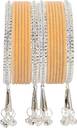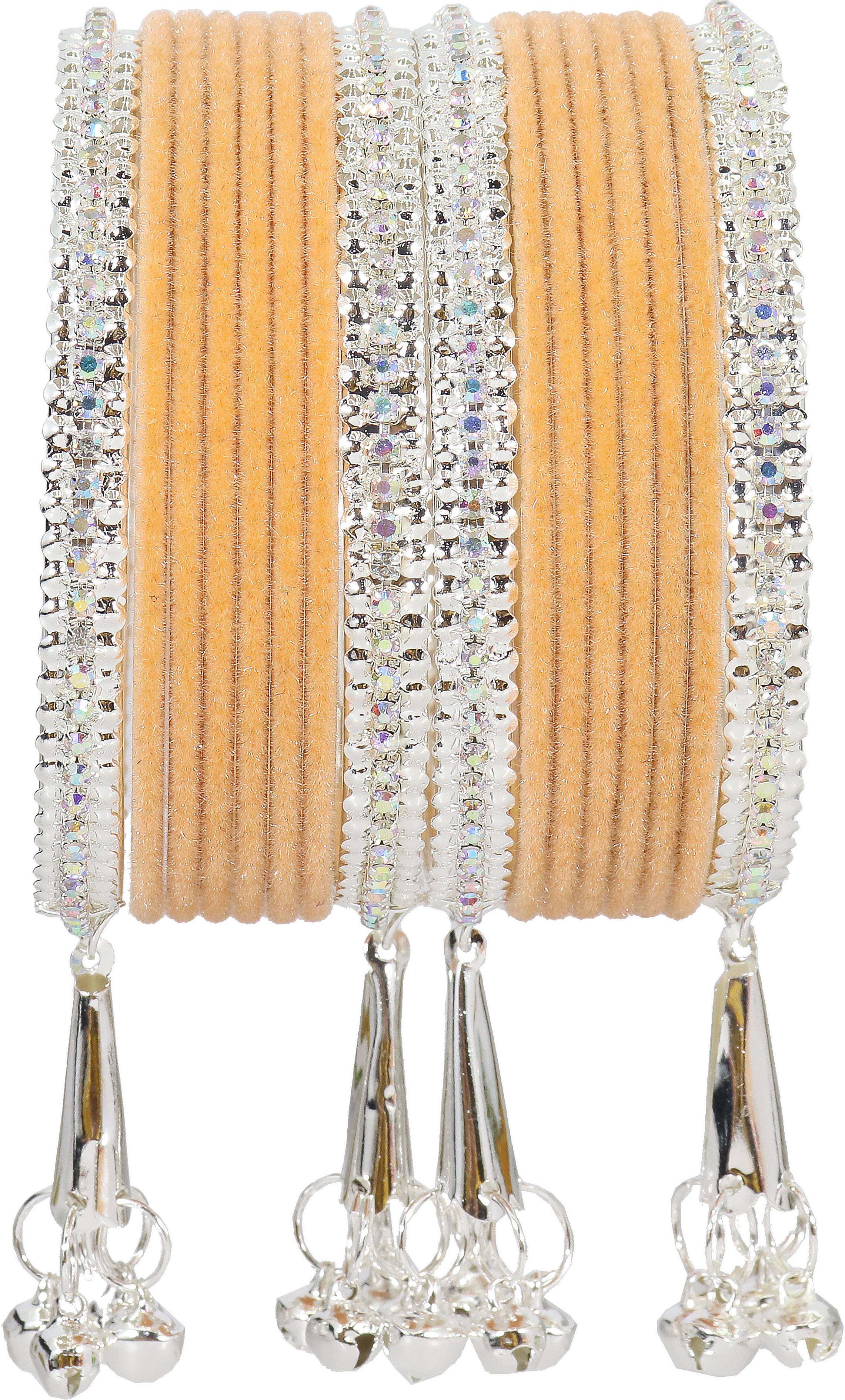 NMII Metal with Zircon Gemstone and Velvet Adorned Bells Latkan Bangles Set For Girls and Women