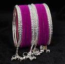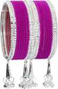 NMII Metal with Zircon Gemstone and Velvet Adorned Bells Latkan Bangles Set For Girls and Women
