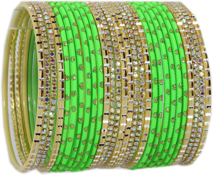 NMII Non-Precious Metal with Base Metal and Studded with Rainbow Zircon Gemstone Glossy Finished Traditional Bangle set for Women and Girls