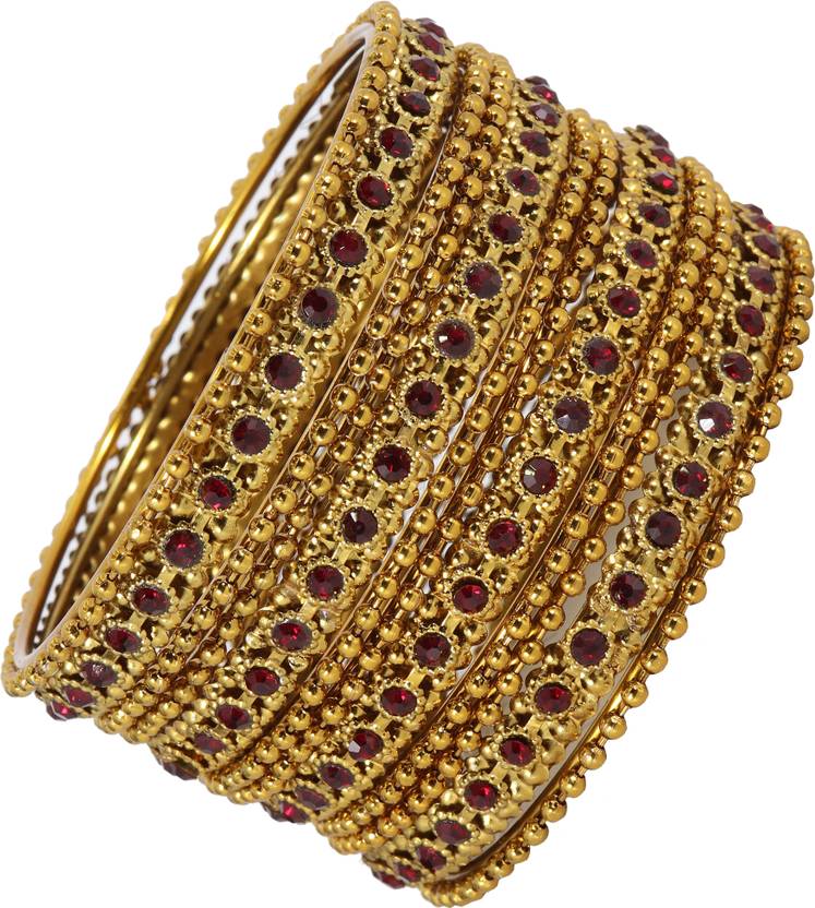 NMII Non-Precious Metal Base Metal with Zircon Gemstone Studded worked and Linked with Ball Chain Glossy Finished Bangle Set For Women and Girls