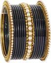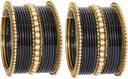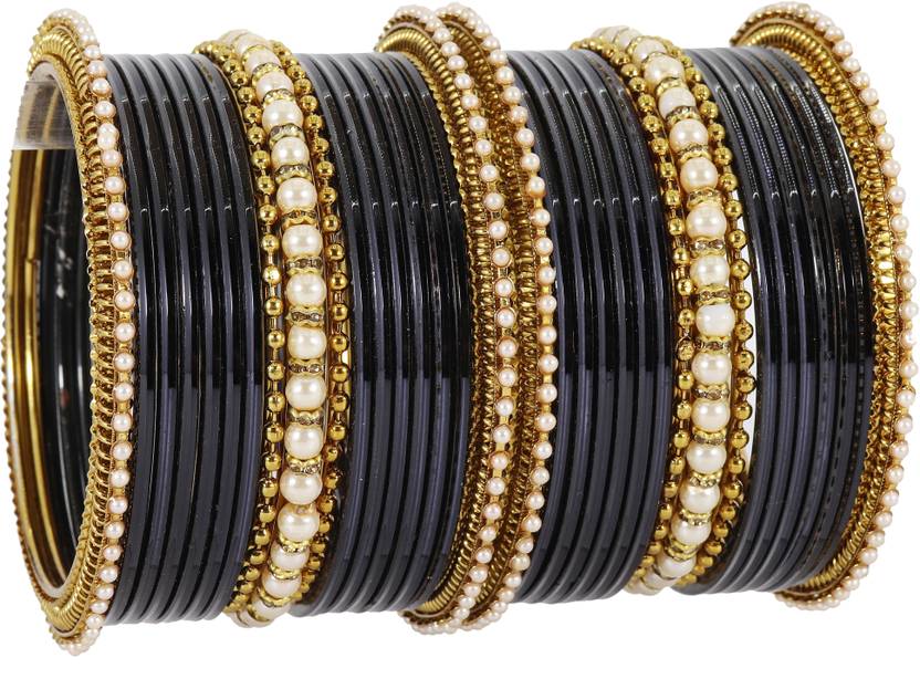 NMII Non-Precious Metal Base Metal Studded with Zircon Gemstone Or Pearl and Linked with Ball Chain Glossy Finished Bangle Set For Women and Girls