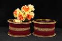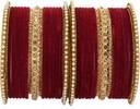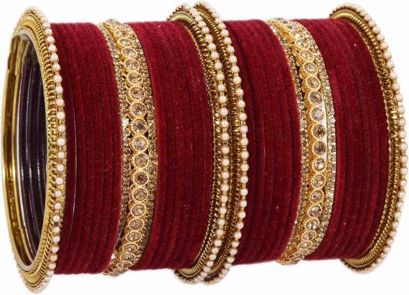 NMII Non-Precious Metal with Base Metal and Studded with Zircon Gemstone and Pearls Glossy Finished Traditional Velvet Bangle set for Women and Girls