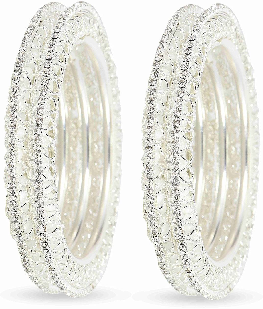 NMII Non-Precious Metal with Zircon Gemstone Studded Worked Glossy Bangle Set For Women/Girls