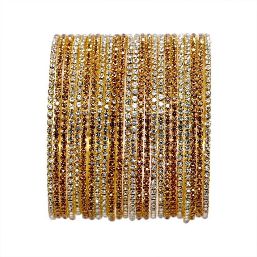 NMII Non-Precious Metal Base Metal with Gold Zircon Gemstone Studded worked Glossy Finished Bangle Set For Women and Girls,