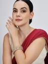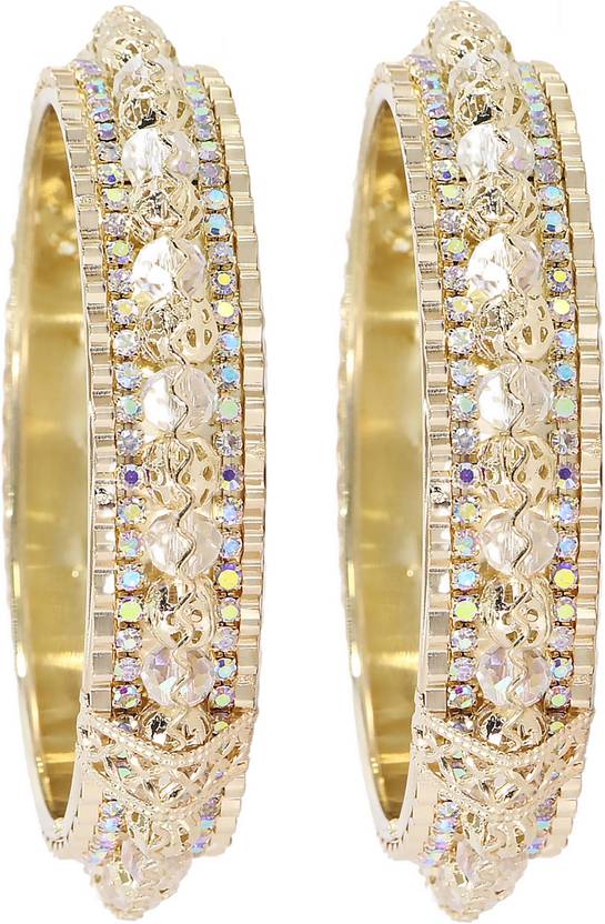 NMII (New Make In India) Presents Alloy Metal with Pearls Moti & Zircon Gemstone Work Kada Bangles Set For Women & Girls. These Designer Bangles Set will Enhance the Women hand Look for all Occasions. These Bangles are made from high-quality Alloy Metal, White Pearls Moti & Zircon Diamond Stone Material. These are durable and features a vibrant color symbolizing love, passion, and new beginnings. The intricate design showcases NMII's skillful craftsmanship, ensuring you shine on your special day. The set also doubles as a versatile piece of bridal jewelry, complementing a wide range of outfits, including classic sarees and modern lehengas. NMII prides itself on offering the finest quality, timeless style, and unwavering commitment to tradition. The set is designed to make your day extra special, ensuring you look and feel your best. Elevate your bridal ensemble with NMII's Metal Kada Set and make memories that will last a lifetime. These NMII's Designer Metal Bangles Set Have a Premium Finish and are Perfect for Weddings, Engagements, Functions, Festival, Rituals and Events. The Brand NMII sells all types of Metal Bangles, Metal Bangles, Acrylic Bangles, Chuda Sets, Kaleera Latkan Sets, Kadas, Bracelets, Women and Girls Traditional to Modern Jewellery, and many More. And Please Refer to our Size Chart to Know your Hand Size Precisely. To maintain longevity, clean bangles with a smooth cotton cloth, avoid direct water, perfume, deodorant, sunlight, and chemicals, and store them in an airtight zip-lock pouch. Thank You For Choosing NMII's Premium Metal Bangles Collection .