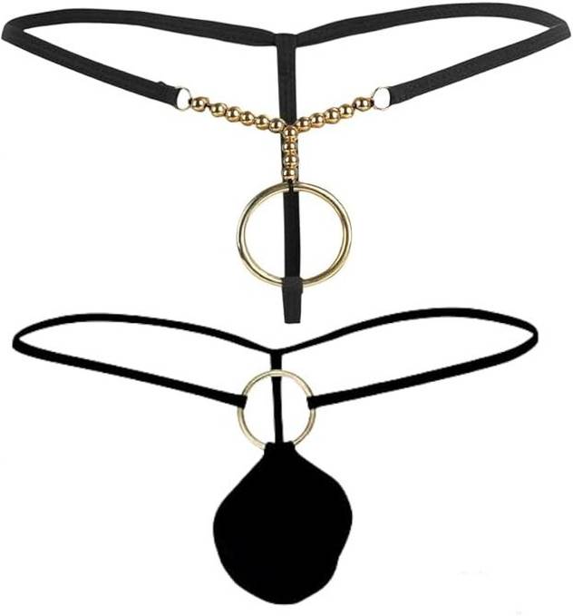 A stretch G-string metal ring featuring O-ring accents in the front and back with an attached elastic waistband Micro Modal G-String is made of micro modal, nylon