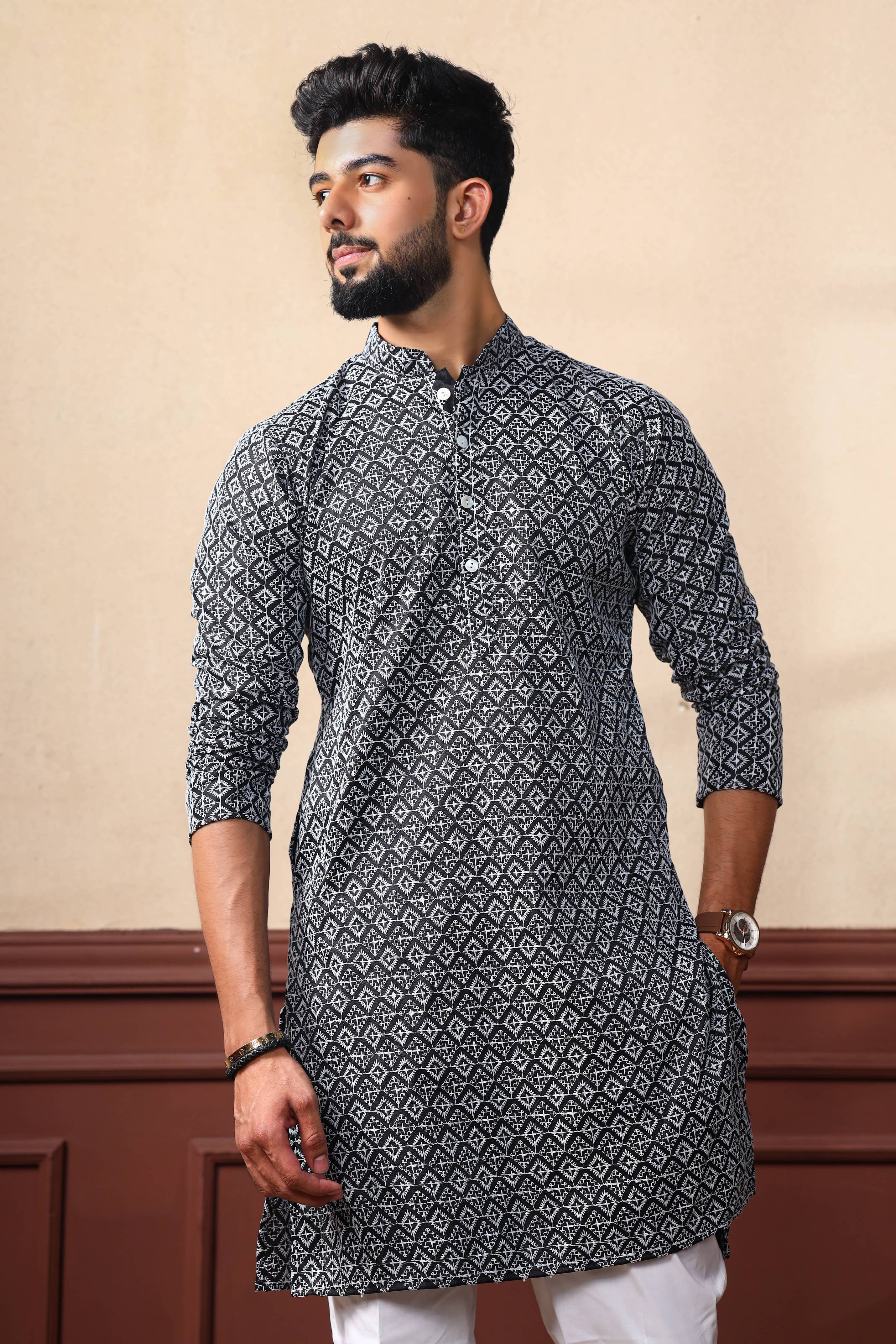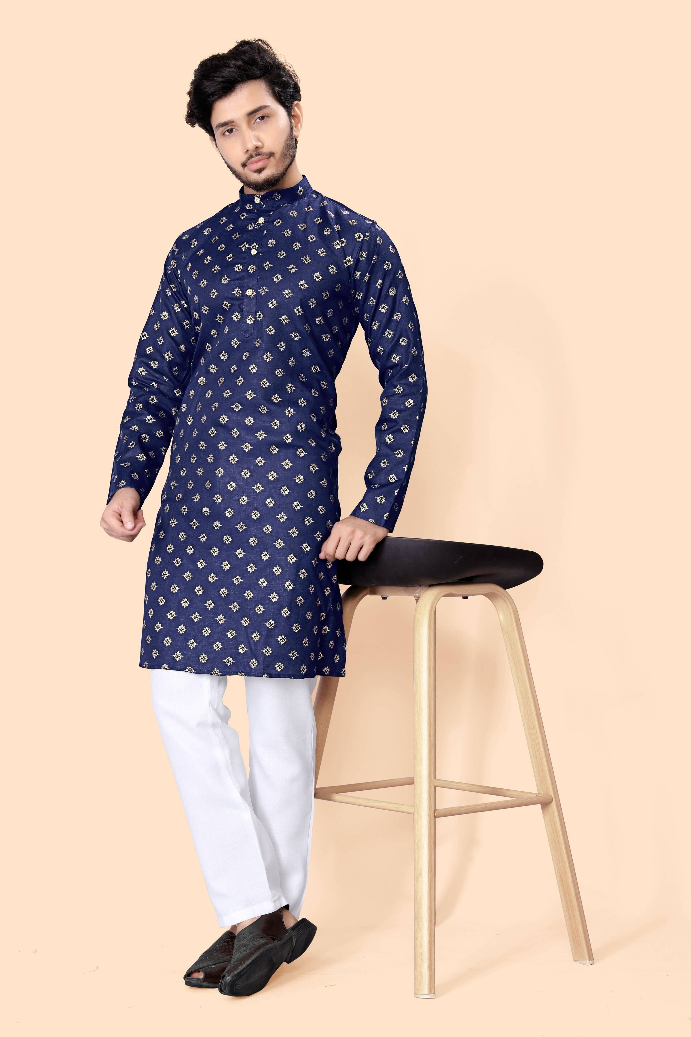 farbric- cotton blend package contains- only kurta + PAIJAMA Side pockets- 2 nos All-Season Comfort: Crafted from a soft cotton blend, this printed long Kurta ensures supreme comfort, perfect for year-round wear. Versatile Style: Seamlessly pairable with jeans, denim, or trousers, this Kurta effortlessly transitions from casual outings to formal settings, adding a trendy yet ethnic touch to any occasion. Timeless Design: With its timeless design and impeccable fit, this Kurta exudes a stylish flair suitable for modern men, whether at the office or social gatherings. Day-to-Night Wear: Ideal for both everyday wear and special occasions like ceremonies and parties, this Kurta offers a versatile wardrobe option that can easily adapt to various settings. Available Sizes: Ranging from S to XXL, this Kurta ensures a comfortable fit for a wide range of body types, promising style and comfort for every customer.
