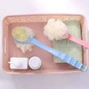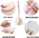 Bathing Back Scrubber Exfoliator with 2 in 1 Bristles and Loofah Body Brush Back Scrubber with Long Handle | for Men and Women | Multicolor 2 In 1 bath brush with long handle shower back scrubber & body brush sponge loofah-perfect bath tool to give you a comfortable shower experience. 2 IN 1 DESIGN Double sided Loofah + bristles shower brush is used in a dry or wet cleaning. Provide your tender skin with added care and superior cleaning experience, Soft, making your body healthier, silky and smooth. You can choose any side according to your needs The extended handle design is great for cleaning hard to reach areas with body wash or scrubs, from face to back to shoulders to arm to leg to feet. Better than just thin wire handle. 100% BODY SAFE body scrub brush's head is made of 100% natural Comfort nylon bristles and soft bristles, healthy and comfortable. Long-handled is made of plastic 100% BPA-free, kind to sensitive skin Durable ergonomic design shower body brush, Fully washable - Simply rinse after use and hang up to dry, It’s a great gift for family or friends. There is a hemp rope on the Loofah, Easy to store on a shower caddy or hang on a hook ,coordinates with most bathrooms Ideal for shower bathing or dry skin brush, Also good for dry skin brushing, exfoliation, back scrubbing and cellulite massaging. Promote lymphatic and blood circulation perfect for Men or Women, even children.