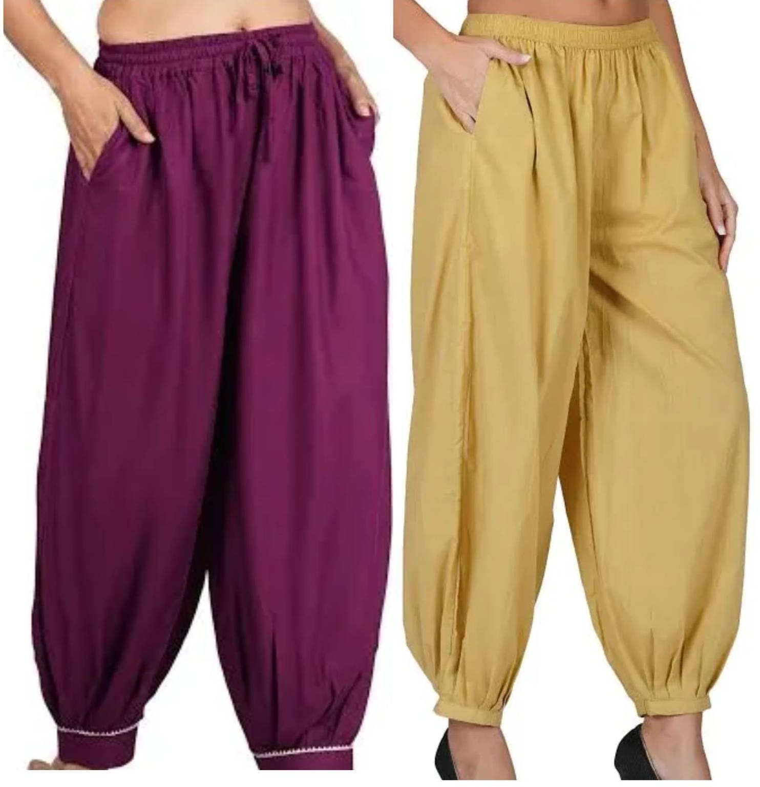 This solid dhoti salwar is made of Cotton fabric, belt loops with drawstring comfortable to wear, which will be the most valuable addition to your wardrobe. Dhoti, a traditional Indian garment originally meant for men, is in vogue, this time it is the women who are it up. You can also play around with the tops, belts, and accessories to change the look. Besides, dhotis are travel-friendly and look great on flats, bellies, gladiators, and even regular slippers. Awesome for Party, Clubs holiday, and Marriage Party wear, very comfortable for easy movement and relaxation. It is very stylish, a lot of stretch makes it most comfortable wear, lightweight, dry easily, breathable, and perfect for your daily fashion practice.With the finest quality of fabric, these Patiala pants can be slipped on easily and are very comfortable to wear. Be the trendsetter among your friends and pair up your Patiala pants with elegant kurtis in bright summer colours. If you wish to don a western look, don’t limit yourself to ethnic kurtis. Mix your Patiala with a t-shirt, a beautiful stole or a dupatta and a set of bangles and your are good to go!