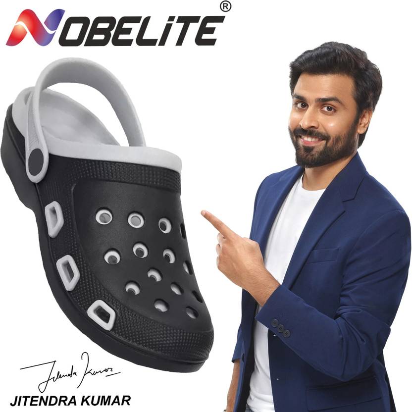 NOBELITE Men Flip Flops (Grey, Black , 7)