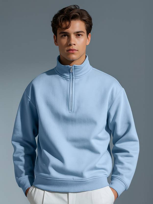 Nobero Relaxed Fit Mock Neck Sweatshirt for Men