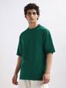 Men Solid Crew Neck Pure Cotton Green T-Shirt