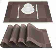 YELONA Rectangular Pack of 4 Table Placemat Brown, PVC