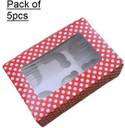 6 Capacity Dot Red & White Cupcake Boxes Muffin Carrier Bakery Box with Inserts, Dot RED White (Size : 9.5 x 6.5 x 3 Pack of 5 Pcs)