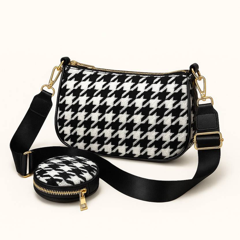 Trendy Houndstooth Sling Bag with Mini Pouch