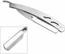 unused and well balanced sliding style Light weight, finely balanced, steel cut throat razor handle Ideal for barbers and hairdressers Material: Stainless steel Color: Silver Fold Package Includes: 1 x Barber Razor. Step to use 1. Open the secure cap to the right. 2. Now pull apart the two blade holders. 3. You now place the blade carefully between the two points like this. 4. Put the upper holder back on to the blade holder. 5. At the click, place the secure p back to the holder. 6. You are now good to go this is how you hold it to get the perfect shave.