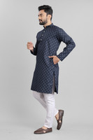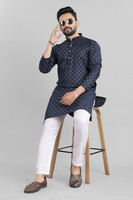 Featuring an ethnic build, this men's kurta showcases a traditional printed design that exudes cultural elegance. The intricate patterns and vibrant build reflect the rich heritage of traditional attire, making it a great choice for festive occasions, weddings, or casual gatherings where a touch of tradition is desired.