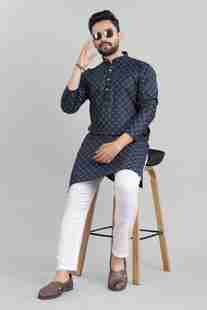 Featuring an ethnic build, this men's kurta showcases a traditional printed design that ex...