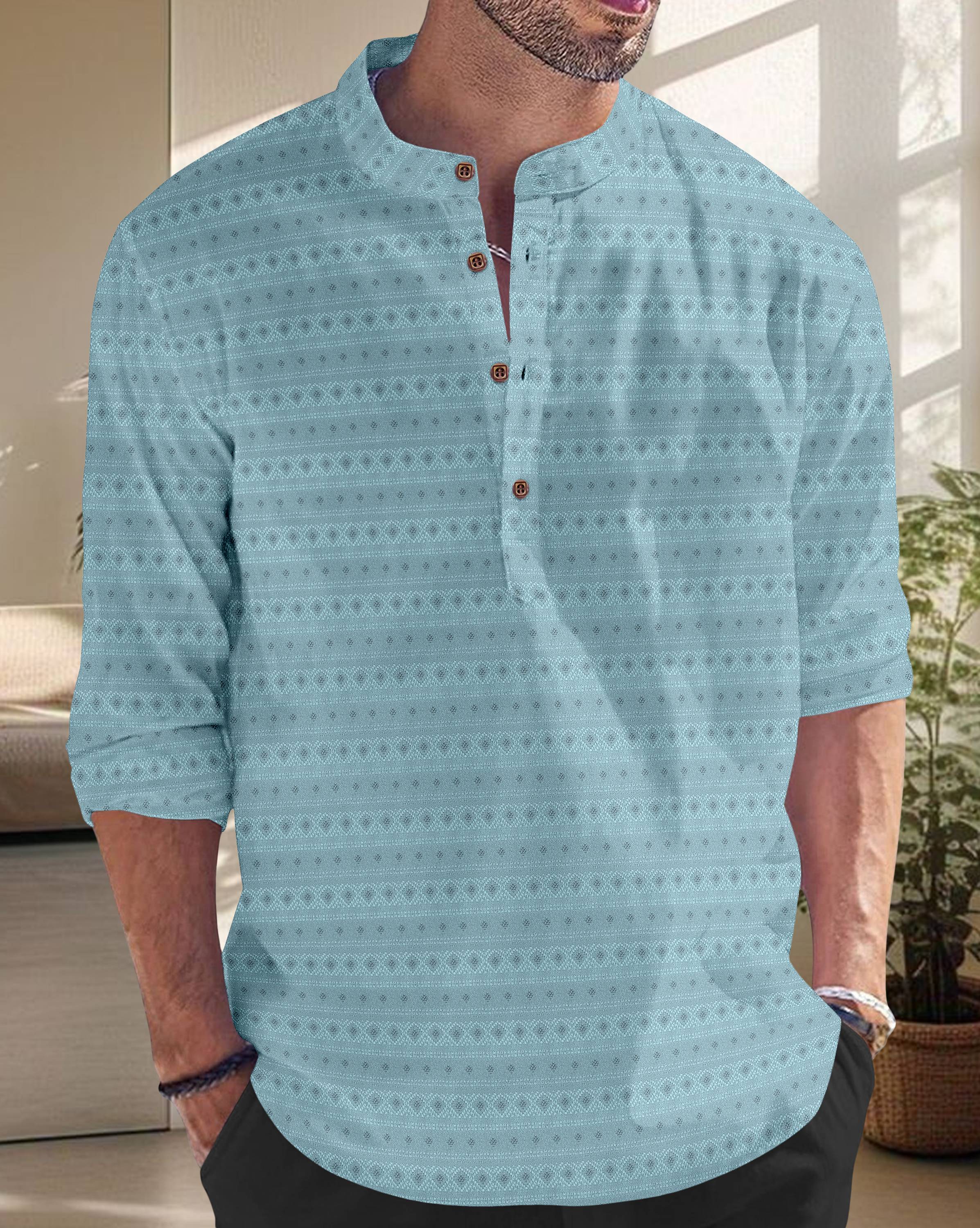 Nofilter Men Self Design Straight Kurta (Light Green)