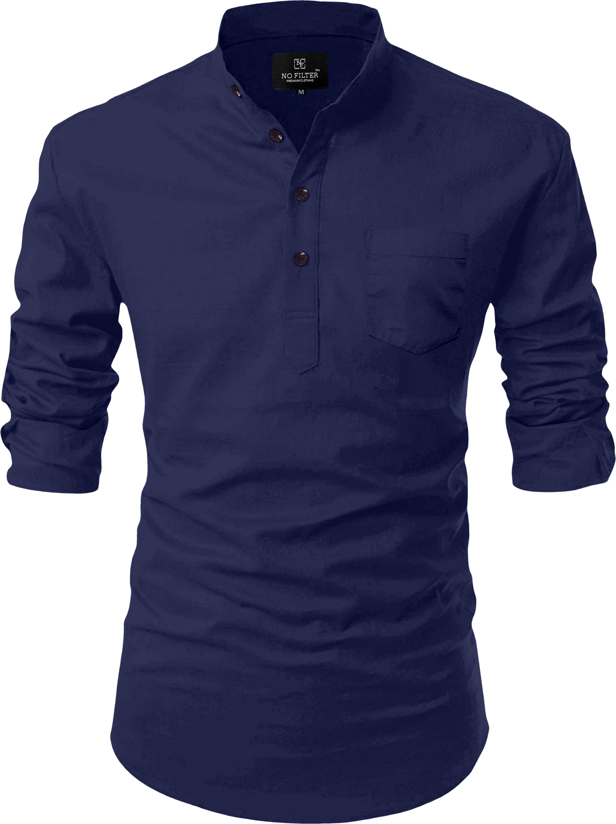 Nofilter Men Solid Straight Kurta (Dark Blue)