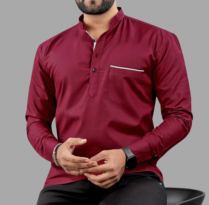 Styled with a solid design, this men's kurta offers a timeless and versatile look suitable for various occasions. The simplicity of the solid design makes it easy to pair with different trousers, ensuring a cohesive and stylish outfit. Thus, wearing this kurta to a family gathering can create a polished appearance without the need for elaborate accessories.
