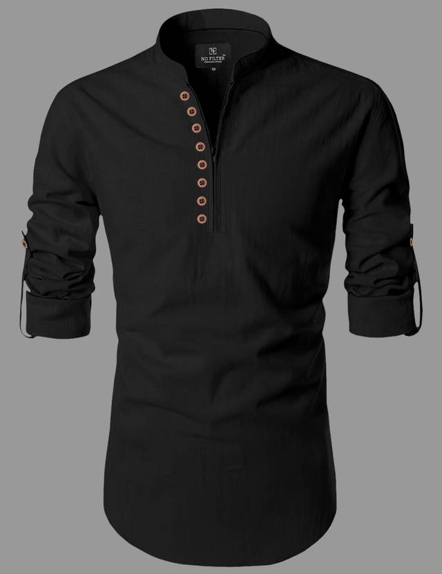 Nofilter Men Solid Straight Kurta (Black)
