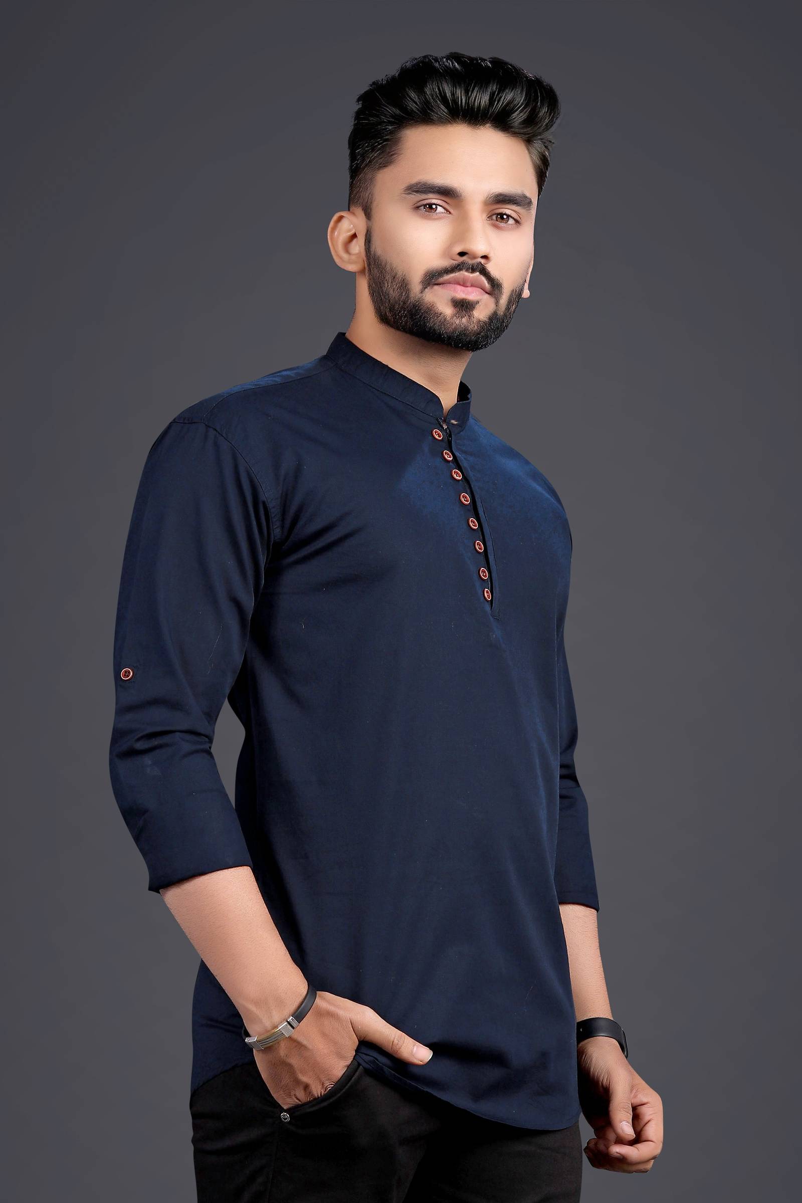 SOPANI Men Solid Cotton Blend Straight Kurta  (Dark Blue)
