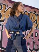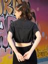 Black Tencel Crop Oversized Shirt Style Top, in Tencel fabric, Unlined, Crop Length, Comfort Fit, Button Closure, Uneven Hemline and features Knot Detail At Front