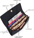 Compact yet Spacious: Measuring at 22cm x 5.5cm x 10.5cm, this clutch wallet purse may be compact, but it's deceptively spacious. It can comfortably hold your large-screen mobile, currency, ATM cards, debit cards, ID cards, passport, essential documents, and even cosmetics, keeping everything organized and within easy reach.
