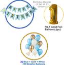 32Pcs EXCLUSIVE Birthday Decoration combo contains: 1Pc Blue and golden happy birthday banner, 10Pcs golden metallic balloons, 10Pcs Blue metallic balloons, 10Pcs white metallic balloons, Number golden foil balloons. The metallic balloon can be filled with air . These birthday theme decoration items are very latest and stylish. These decoration can be used in home, room decoration, apartment, wall or anywhere.This Blue and gold birthday balloons, foil balloons, and number balloons decor can be use for birthday theme, These birth day balloons looks really elegant when decorated in any space. They really make the decoration stand out. You can get birthday photo shoot done right!! they make a perfect addition to this beautiful decor. Capture a stylish and most unique Blue and gold birthday celebration photo for Instagram !! Oh!! they will surely remember this birthday and save it as a memory forever.