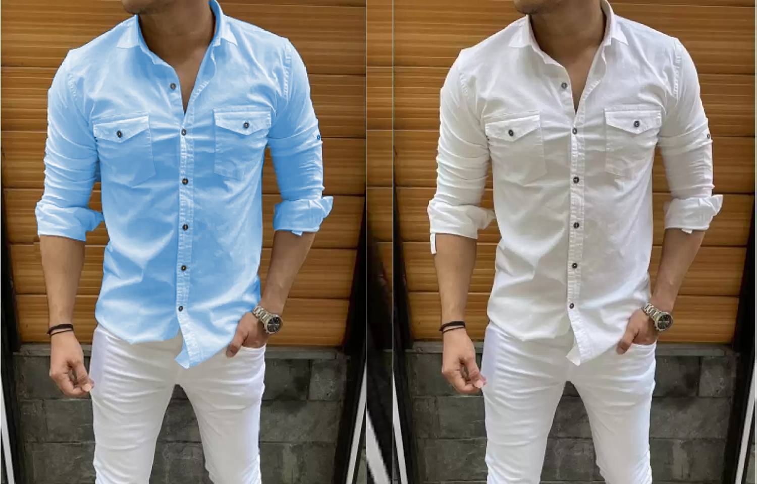 Noorify Men Solid Casual White, Blue Shirt (Pack of 2)