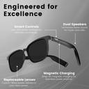 With a 10-hour battery backup and dual open-air speakers, enjoy crystal-clear audio without blocking ambient sounds. The waterproof build ensures all-weather durability, while replaceable lenses keep your style fresh.