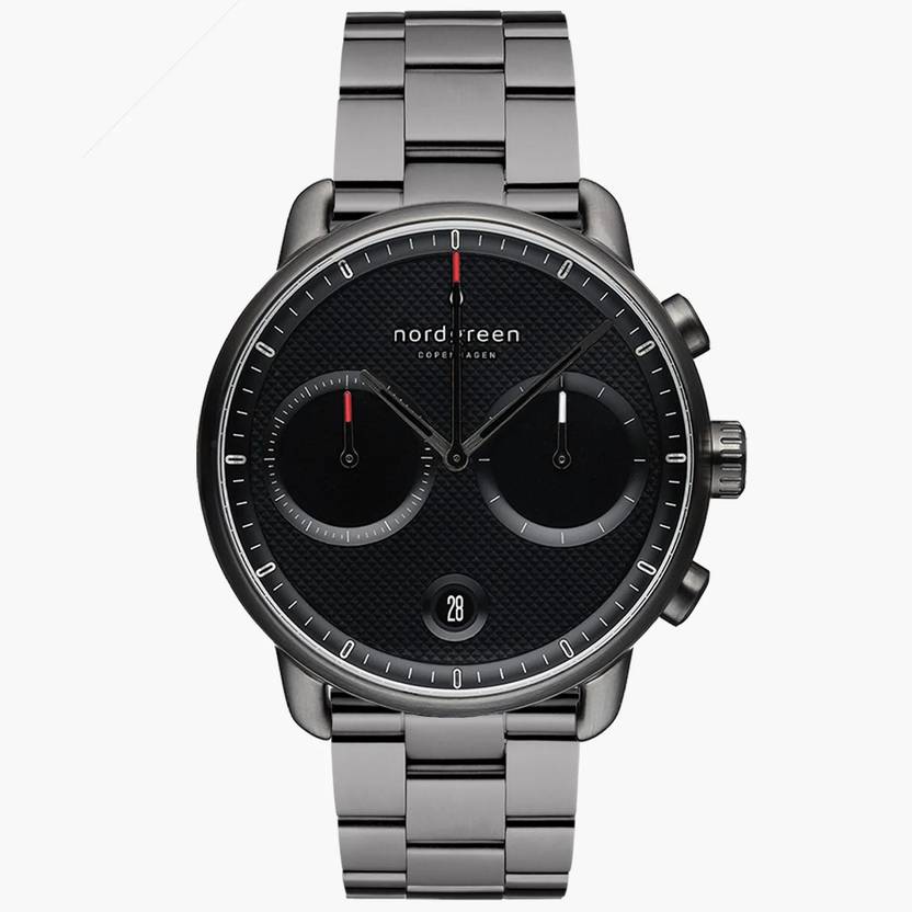 The Pioneer Chronograph is an award-winning watch of the 2020 Red Dot Award for Design and is the fourth and most recent watch to join the Nordgreen collection. The Pioneer is Nordgreen's take on a Chronograph differing from the Native, Philosopher, and the Infinity models due to its ability to record elapsed time. The Pioneer Chronograph celebrates the Danish tradition of Science for Humanity, which aims to create positive change for humankind, thus working towards a greener future. Denmark is a global pioneer in green technology advancements, driving change, and inspiring nations across the globe to do the same. The Pioneer's makeup is striking in its simplistic design. We rounded and softened its edges, for a sophisticated take on a classic timepiece. Combined, the sub-dials, the stainless steel case, and the domed sapphire crystal embody the resilience of Danish innovation. The minimalist, clean dial is synonymous with the sustainable environment that we strive to live in. The Chronograph second and minute hand indicated by the red tips are representative of those found on wind-turbines, reminding us of the bond between Nordgreen and the sustainable outlook of its homeland. Choose between a black, white, or navy dial, depending to add to your desired watch style. One 42mm dial size to perfectly accommodate two subdials and a date window. Choose gunmetal, silver, or rose gold dial for your Pioneer watch case style. Our straps are interchangeable to pair with your style and not the other way around. Match your model with straps that suit you best! Choose between leather, mesh, rubber, nylon, or vegan leather strap styles for your desired classic or trendy look. All you have to do is select a model. Select a watch size and color. Pick a strap. That’s all.