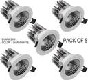 Nortek Evana 24W Round Adjustable Design Tiltable COB Downlight Warm White Pack of 5 Recessed Ceiling Light Ceiling Lamp (White)