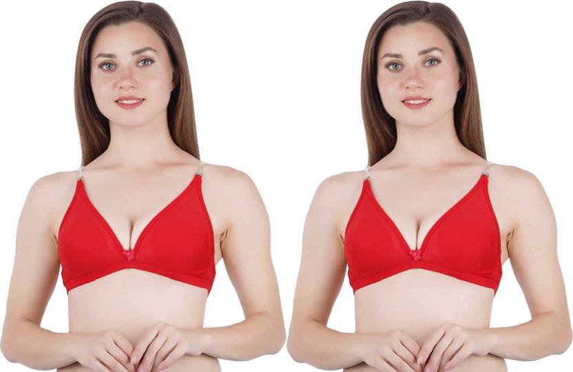 Norvia Backless Transparent Bra Women T-Shirt Non Padded Bra (Red)