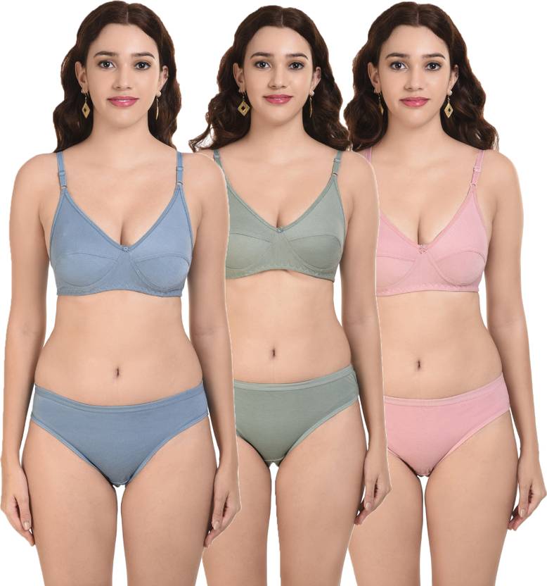 Bra & Panty Set Solid Multicolor Lingerie Set