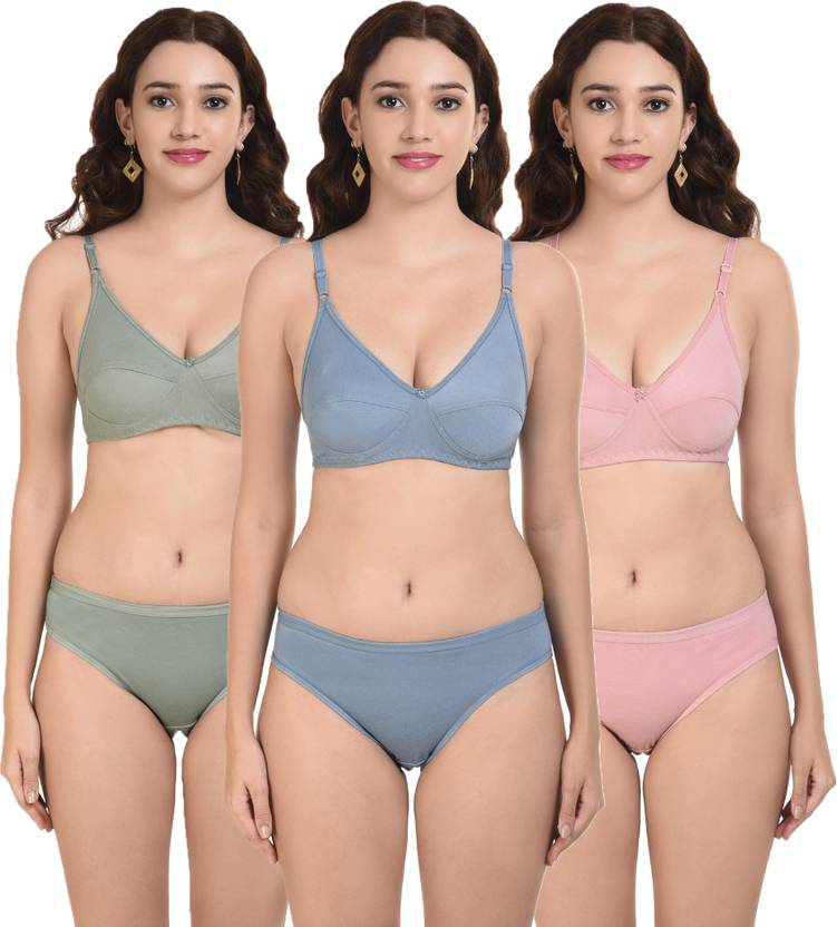 Bra & Panty Set Solid Multicolor Lingerie Set