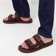 Made for all-day comfort and a secure fit, these platform sandals for men have a double hook-and-loop closure system with a total of four velcro straps. This allows for full adjustability for different foot shapes. The durable textile upper is strengthened with polyester niwar tape, which provides both structure and flexibility.