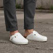 Proudly made in India, NoStrain's mule cork sandals are BIS Certified with the highest quality standards. The sandal is a unique minimalistic design which gives you a different styling like an open shoe. The cork+ rubber footbed, genuine leather insole and the 500 GSM Matt finished upper material, makes it all the more popular in the Indian market.