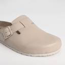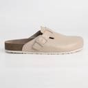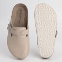 NoStrain's Men Cork Sandals in Mule design. This sandal is an epitome of class, style and minimalistic design. A footwear that is fresh, unique and shall give you a unique feeling. The mule cork sandals' footbed is made from natural materials like cork and rubber. The insole is 100% genuine leather, providing a comfortable and a very long lasting good experience from the footwear. The upper is made with synthetic leather of 500GSM Matte finish grade. The buckle in the footwear helps your fit be perfect.